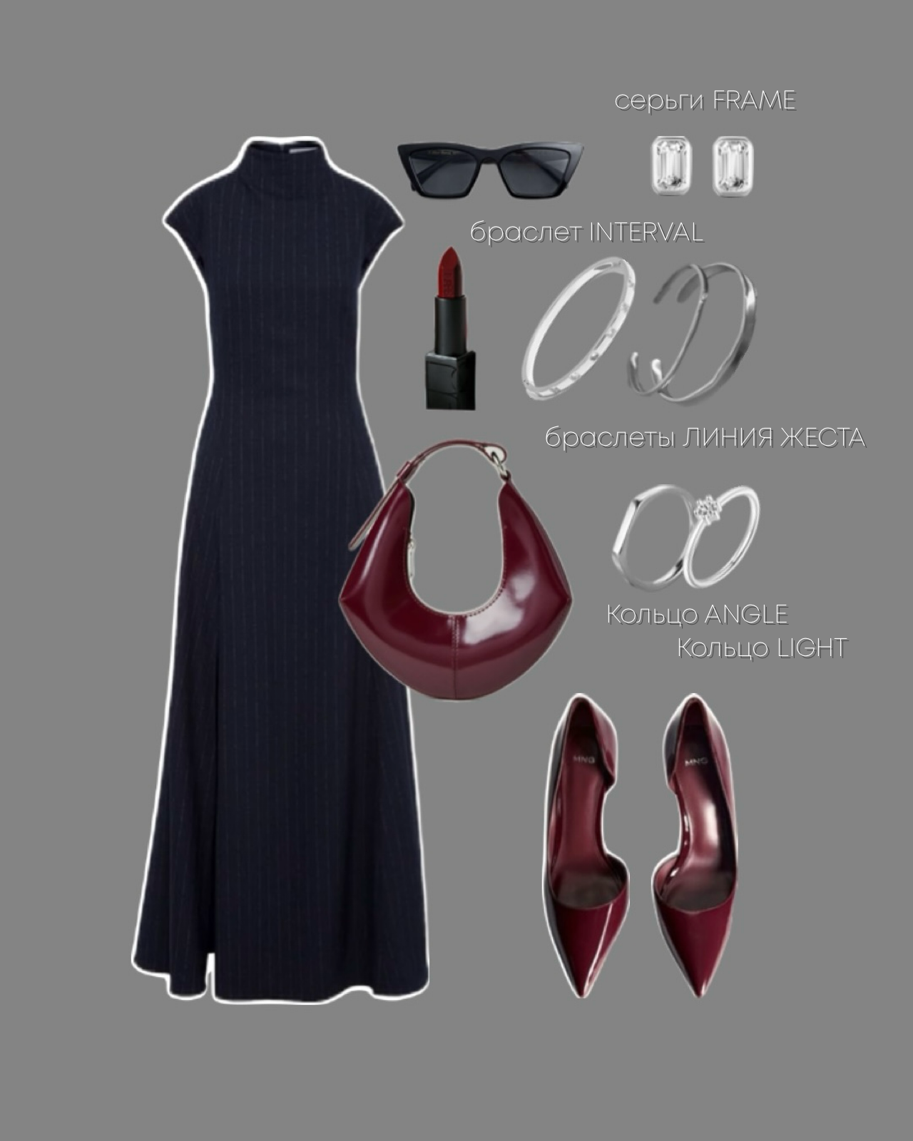 COLD CHAIN. Образ: строгое платье и винные акценты — для женщины, которая говорит меньше, но каждое её слово весит много.